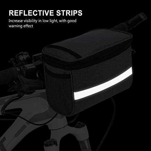 【Facile da usare】Con 3 cinghie di fissaggio, puoi facilmente e saldamente fissare la borsa al manubrio. Può essere rapidamente e facilmente agganciato e staccato da una bicicletta e si adatta alla maggior parte dei modelli e delle dimensioni delle biciclette.