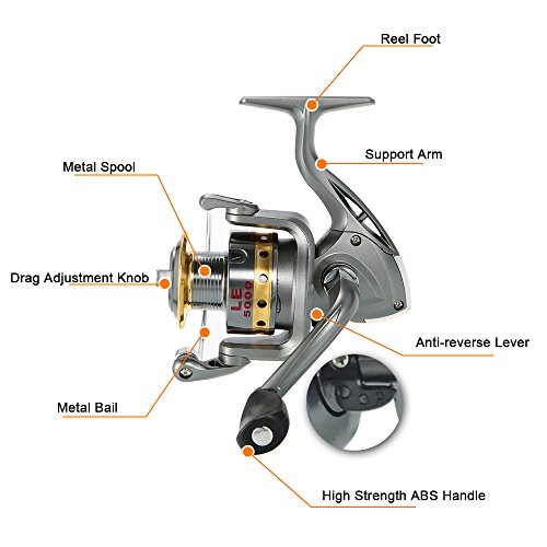 Mulinello da pesca: Il mulinello da pesca di lusso è intercambiabile a sinistra e destra, dotato di bobina in metallo resistente, comoda maniglia pieghevole in ABS e corpo in grafite ad alta resistenza, 8 cuscinetti a sfera e sistema anti-inversione istantaneo.