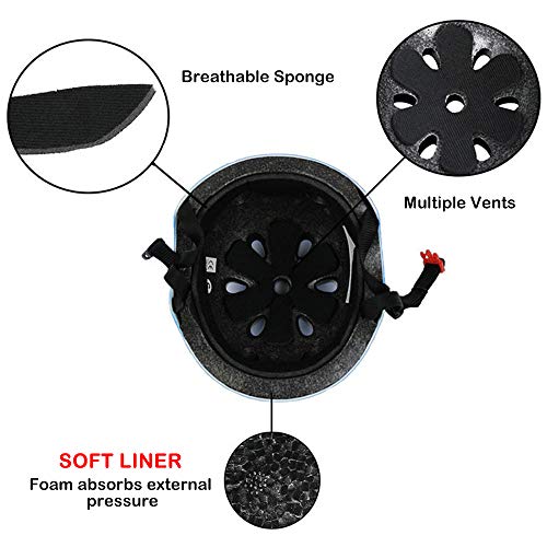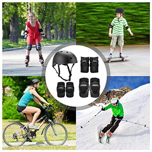 Lixada Casco Bici Protezioni Set, Protezioni per Ginocchiere 7 in 1 Set, Casco di Kit Protezioni, Casco Bambino Set con Gomitiere Polsi, per Bambini, Ragazzi, Adatto a Bicicletta, Skateboard, Scooter