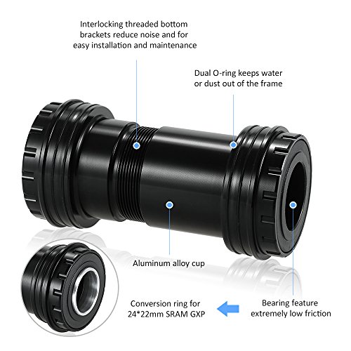 Compatibile con 24 * 24mm Shimano o 24 * 22mm SRAM GXP con un anello di conversione.