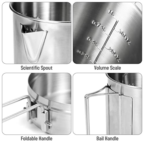 Lixada Pentola da campeggio, 1 l, in acciaio inox, con coperchio e manico, per campeggio, escursionismo, pesca, picnic