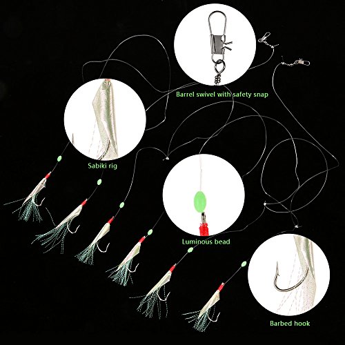 5 confezioni di un set.Le bacchette Sabiki danno l'odore di pesce per tentare i pesci di gioco.