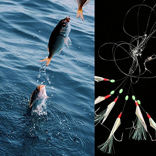 Lixada Ami da Pesca 5 Confezioni 30PCS Pesca Lure Sabiki Baite di Pesca Filo di Pesca Pelle di Pesce Girevole per Filo di Pesca con Connettore a Scatto