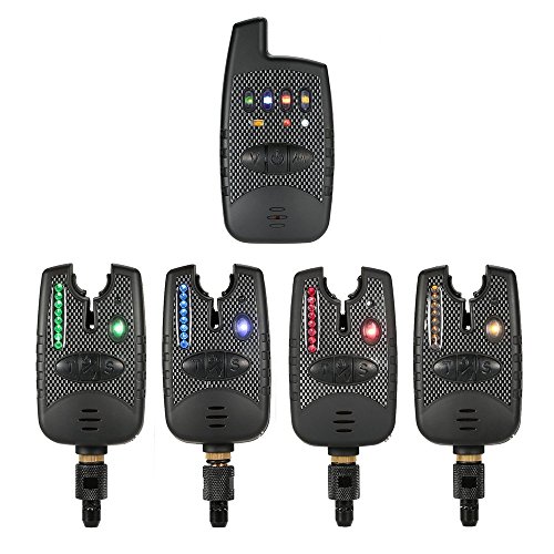 Lixada Wireless Pesca Allarme Set 4 Avvisatori di Pesca + 1 Ricevitore in Scatola LED Pesca Alert