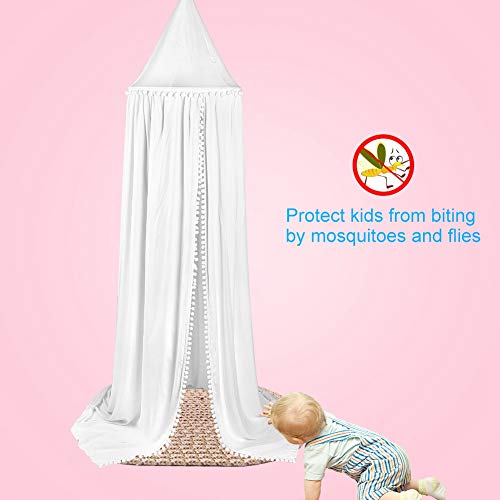 Liyeehao Letto a baldacchino Princess Baldacchino Tondo a Cupola Tenda da Gioco per Asilo Nido in zanzariera di Cotone Decorazione della casa sospesa per Bambini Indoor Outdoor(Bianca)