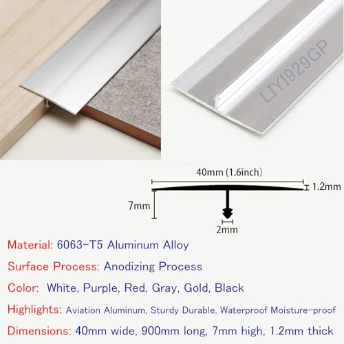 LIYI929GP Profilo di Transizione A T Alluminio, Facile da Pulire Soglia di Dislivello Pavimento, Durevole Strisce di Copertura per Pavimenti Striscia di Soglia in Alluminio, Processo di Anodizzazione