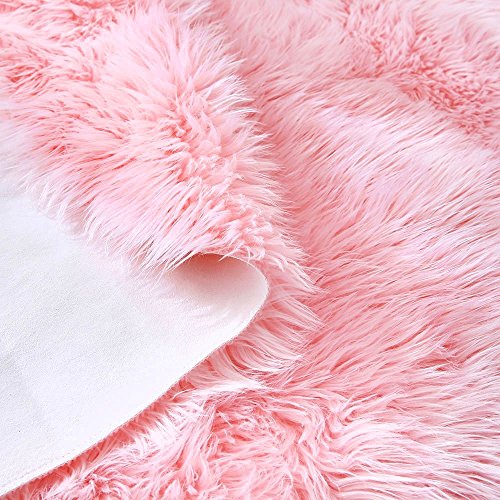 LIYINGKEJI Deluxe Soft Modern Faux Pelle di Pecora Shag Area Tappeti Gioco per Bambini Tappeto per Soggiorno e Camera da Letto Divano 60 x 60 cm (Rosa)