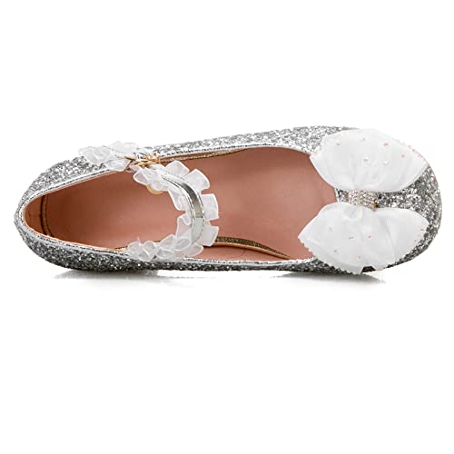 Lizoleor Donna Mary Jane Scarpe Punta Rotonda Sequins Tacco A Blocco Plateau Pump Donna con Cinturino alla Caviglia Estate Festa Sposa Scarpe Argento Numero 40.5 EU/42Cn