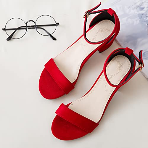 Lizoleor Donna Tacco A Blocco Punta Aperta Comodo Con Cinturino Alla Caviglia Moda Sandali Estate Casuale Tacco Medio Fibbia Festa Scarpe Rosso Numero 37 EU/38Cn