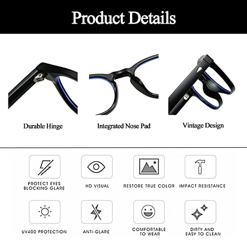 Montatura di alta Qualità - Questo paio di rotondi occhiali anti luce blu è realizzato con una montatura in plastica di alta qualità, con nasello integrato, cerniera in metallo rinforzata e lente che blocca la luce blu. Tutte queste caratteristiche garantiscono occhiali solidi e durevoli e un uso prolungato.