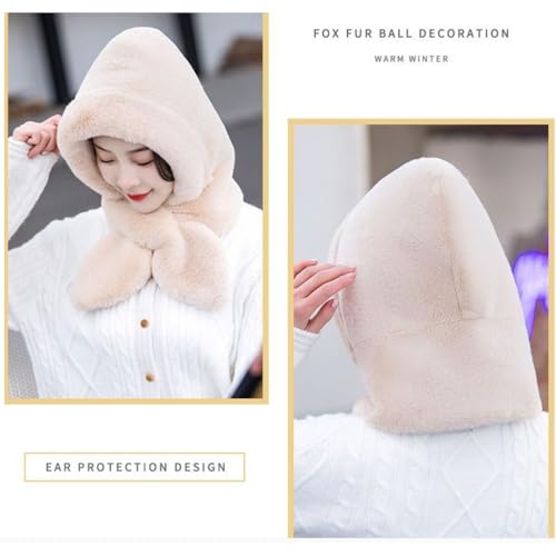 LJRPUPY Caldo cappello sciarpa con cappuccio cappello sci neve cappelli foderato in pile invernale pelliccia cappello scaldacollo per donne ragazze, cachi, Taglia unica