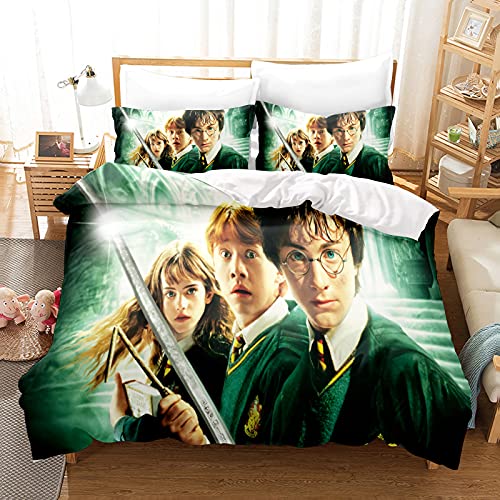 LKFFHAVD Harry Potter, set di biancheria da letto Hogwarts, con stampa 3D, in microfibra, con federe, adatto per ragazzi e ragazze (140 x 210 cm, 4)