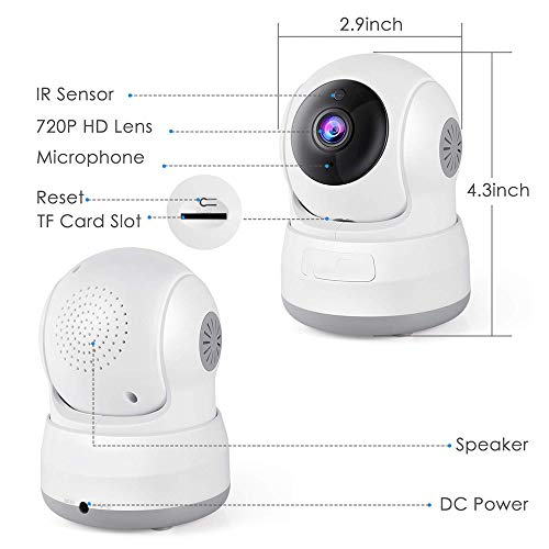 LKJCZ Telecamera di Sicurezza Wireless, 720P HD Home WiFi Wireless Security Surveillance Telecamera IP con Motion Detection Pan/Tilt, 2 Vie Audio E Visione Notturna Baby Monitor, Nanny Cam,White