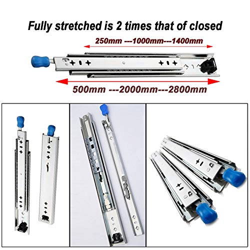 LKLXJ 2 Pezzi Guide Scorrevoli per Cassetti Estrazione Totale - Cuscinetti per Guide Scorrevoli, 500mm 800mm 1400mm, Molto Robusto Guide Resistenti E Pratiche, Acciaio Guide