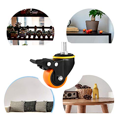 ★ [Materiale di alta qualità]: ruote girevoli a vite, realizzate in materiale poliuretanico di alta qualità, materiale ecologico, doppio dispositivo frenante in plastica, sicuro da usare, durevole, forte capacità portante, silenzioso e silenzioso