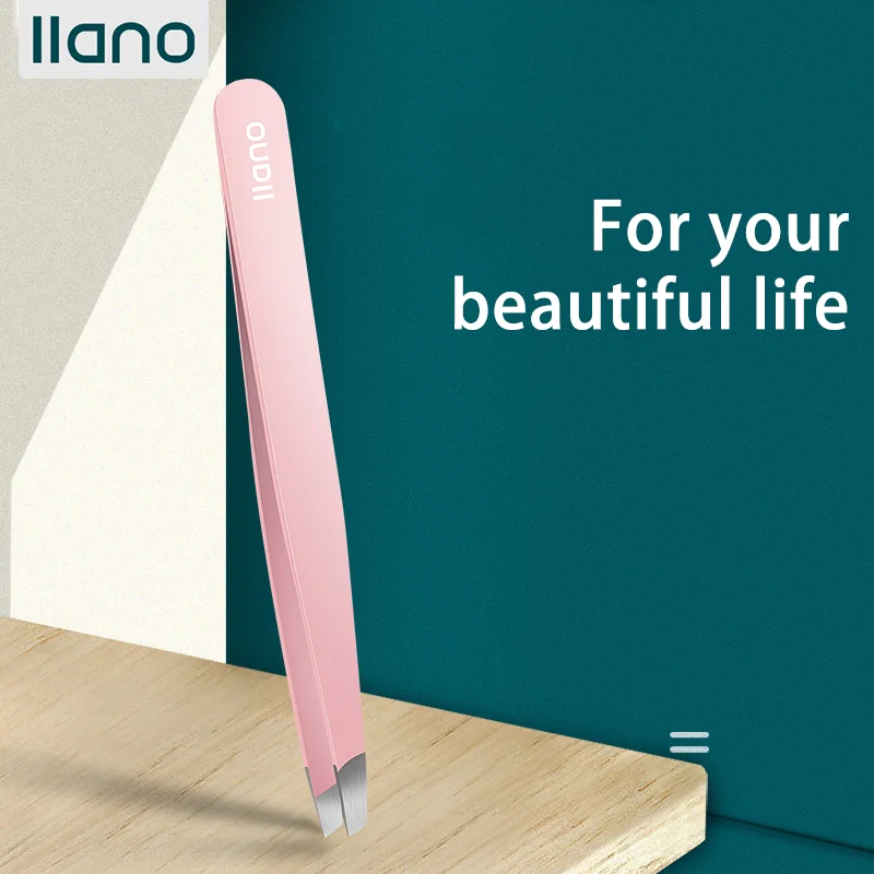 LLANO Eyebrow Tweezer Hairs Puller Pink/Black Flat Tip Tool Tweezers For Man Women Eyebrows Removal Tools