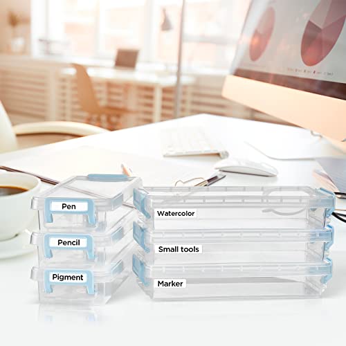 La Llareta 6 Pezzi Scatole Impilabili Traslucide, Contenitore di Matita Multiuso, Organizzatore Plastica Astuccio, con Coperchio per Ufficio, Casa, Scuola