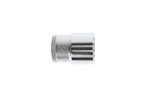 ACCESSORI COORDINATI: La bussola dodecagonale da 23 mm è ottima per ogni cassetta degli attrezzi, e l'adattatore con attacco quadro femmina è compatibile con i cricchetti da 1/2 pollici e non danneggia le viti gazie al profilo UD