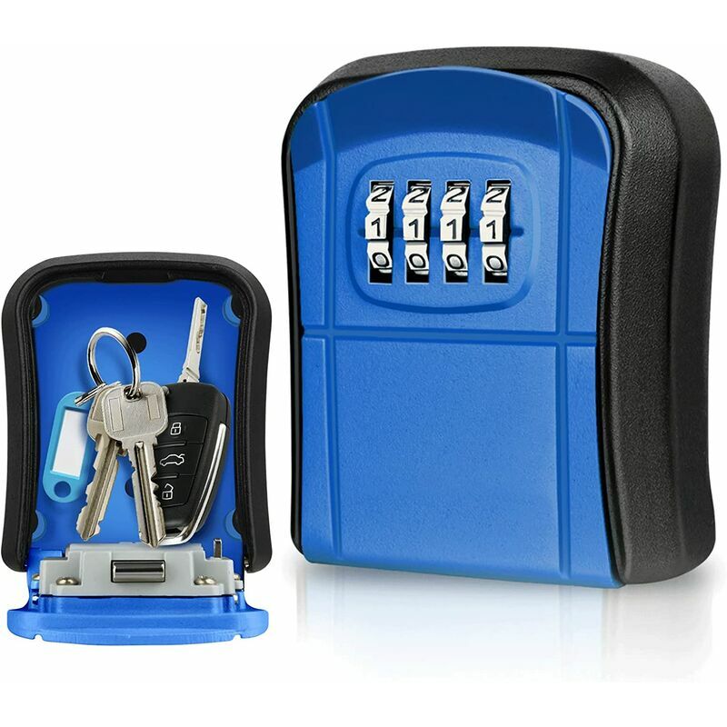 Amplia gama de aplicaciones: esta es una buena caja de llaves combinada para guardar llaves y tarjetas bancarias, etc. Se puede instalar en su hogar, oficina, almacén, casa de vacaciones o donde lo necesite. Puede compartir llaves de repuesto con amigos, familiares, vecinos y cuidadores. Con esta caja fuerte para llaves para exteriores con cerradura, no tiene que preocuparse de que las llaves se escondan debajo de la alfombra. ALTA SEGURIDAD: Nuestras cajas fuertes para llaves montadas en la pared están hechas de una aleación de aluminio de alta calidad y un mecanismo de bloqueo de acero para proporcionar resistencia adicional a la caja de llaves exterior contra martillazos o perforaciones. El material de metal resistente a la intemperie protege sus llaves y tarjetas. Combinación confiable de 4 bits: use una combinación de 4 bits para una protección poderosa. La bóveda de contraseñas de 4 dígitos ofrece hasta 10 000 combinaciones de contraseñas diferentes, que son mucho más difíciles