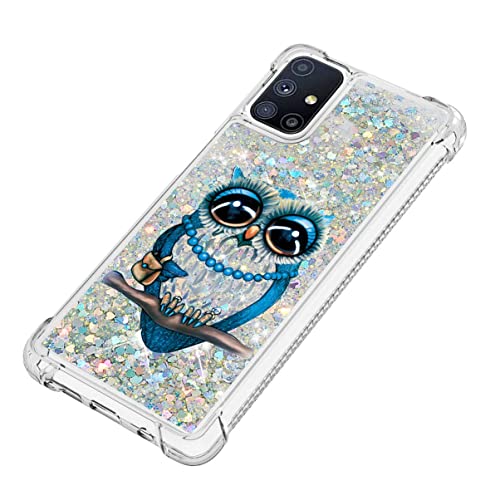 LLSHN Cover per Samsung Galaxy M51, Glitter Bling Clear Liquido Custodia TPU Silicone Morbido Brillantini Quicksand Antiurto Protettivo Case Cover per Samsung Galaxy M51, Gufo