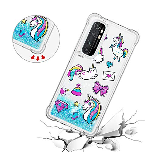 LLSHN Cover per Xiaomi Mi Note 10 lite, Glitter Bling Clear Liquido Custodia TPU Silicone Morbido Brillantini Quicksand Antiurto Protettivo Case Cover per Xiaomi Mi Note 10 lite, Cavallo arcobaleno