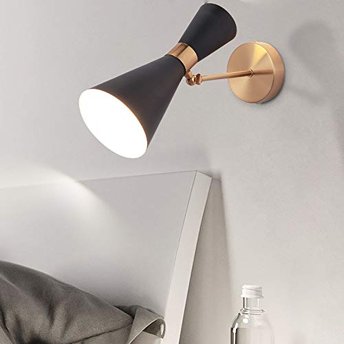 LMAMZ LED Lampada da Parete Interno, Applique da Comodino Camera da Letto in Metallo Moderno su e Giù Regolabile Design Angolo per Soggiorno Camera da Letto Corridoio Scale,Nero