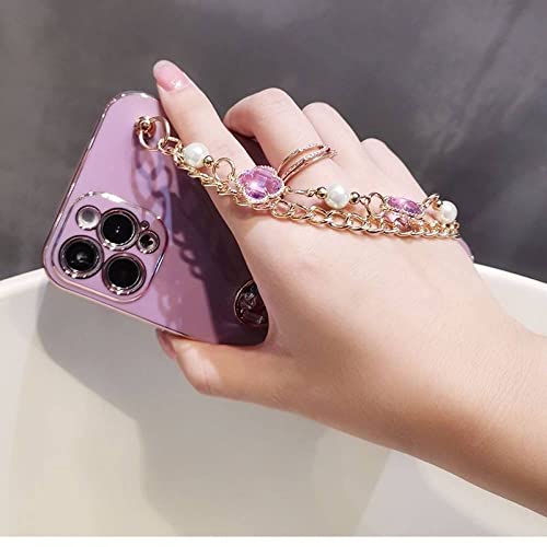 LMEIL Custodie per telefoni con cuore glitterato per iPhone 14 Pro Max 13 12 11 Mini Xr X Xs Se 2020 7 8 Plus Cover Bracciale morbido, viola scuro, per iPhone 14Pro Max