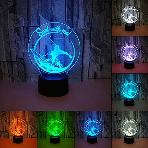 LNHYX Water Sport Atleta 3D Illusion Lampada Night Light Surf Style 7 colori Led Touch Sensor Illusion Lampada Trofeo Surfer Home Decor