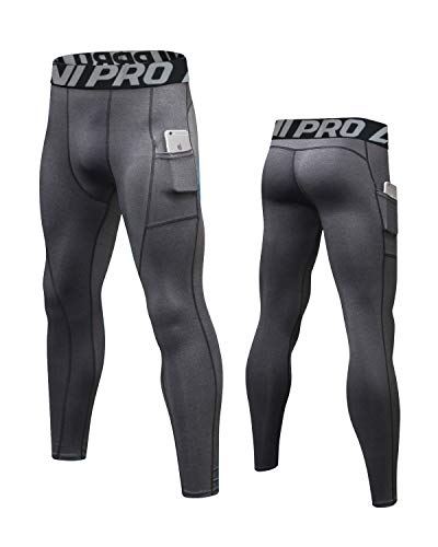 LNJLVI Leggings a Compressione da Uomo Calzamaglie Sportive Pantaloni Base Layer Tights for Gym Jogging Running (Grigio,M)