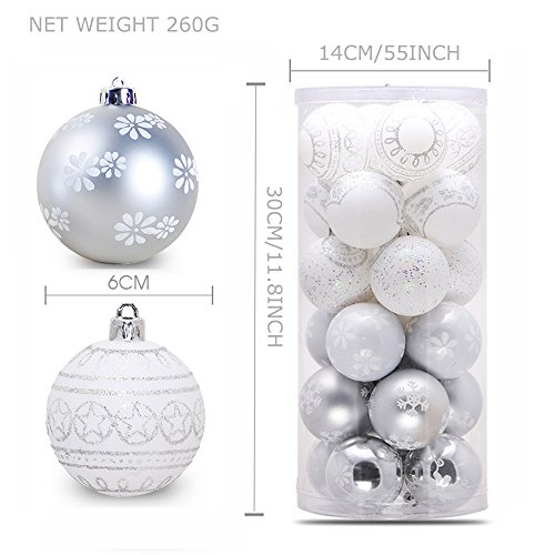 Lnkey 24 Palle Natale Bianche argento,infrangibile palle albero di natale Decorazioni per Alberi di Natale, Nozze, Partito Decorazione (24 / pacchetto,bianche e argento, diametro 60mm)