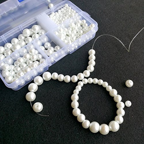 Lnvision - Perline in Vetro, Rotonde, da 4 mm a 10 mm, 400 Pezzi, Colore: Bianco, Vetro, Weiß 4-10mm, 4-10mm