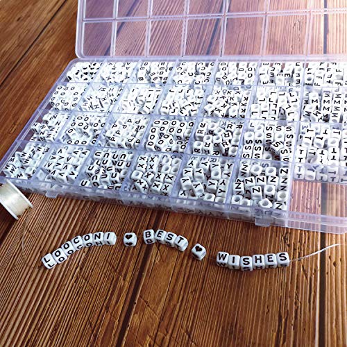 Lnvision 720 Pezzi A alla Z e Amore Cuore Bianco Acrilico Cubo Perline Cubo Alfabeto Lettere Distanziatore Perline 6x6mm Distanziatore Perline Gioielli Artigianato DIY