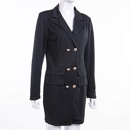 Loalirando Abito da Donna Formale Blazer a Manica Lunga in Tinta Unita Solido V Doppio Petto Vestiti Lunghi Lady Ufficio OL Abiti da Lavoro Elegante S-XXL (Nero, Medium)