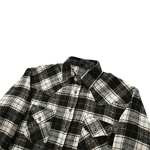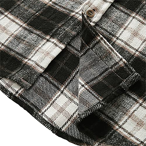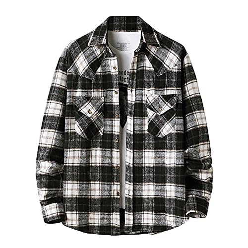 Loalirando Camicia Flanella Uomo Elegante Camicia a Quadri Autunnale e Invernale Plaid Monopetto Camice Uomo Manica Lunga Slim Fit S-XXL (Nero, XX-Large)