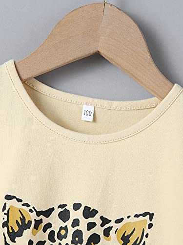 Loalirando Completo Bambina 2-7 Anni Set Pigiama 2 Pezzi in Cotone 100% T-Shirt a Maniche Corte + Pantaloncini Leopardato Stampa a Gatto Cartoon Ragazza Regalo Estate (3-4 Anni, Giallo)