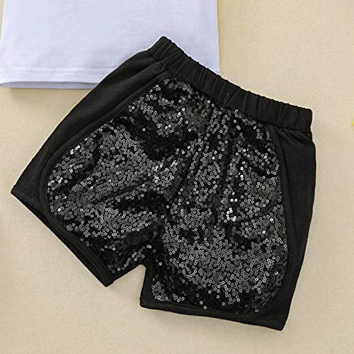 Loalirando Completo Bambino Estivo Unisex Tuta Bambina Maglietta a Manica Corta con Ricamo Ala + Pantaloncini Neri con Pailettes (Bianco+Nero, 2-3 Anni)