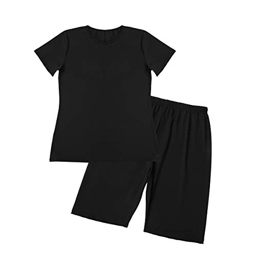 Loalirando - Completo da donna con pantaloncini e top casual, a maniche corte, per sport, yoga, fitness Nero S