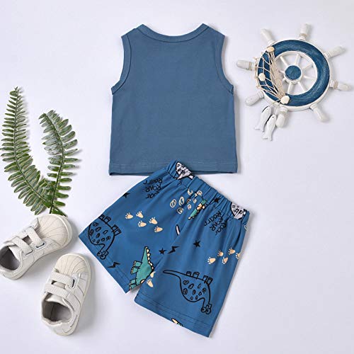 Loalirando Coordinati Bambini 2 Pezzi Completini da Neonato Infantile Estiva Set di Pantaloncini + Canotta Abiti Estivi per Bambini (Dinosauro Blu B, 18-24 Mesi)