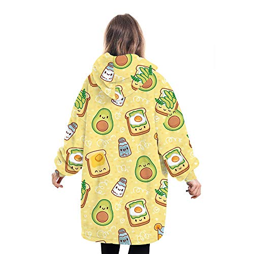 Loalirando - Coperta oversize con cappuccio, in pile di oodie, per donne, uomini, bambini, con grande tasca, in coordinato Giallo - Avocado 7-12 anni