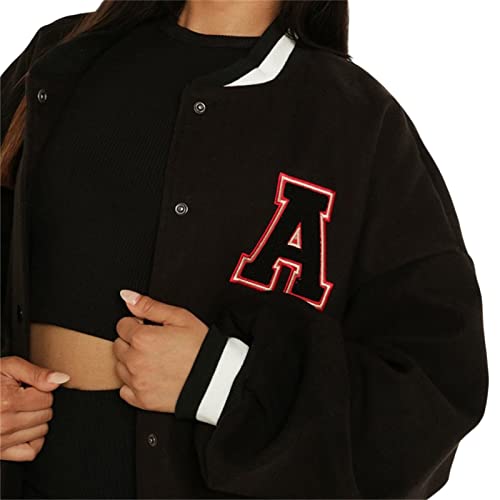 Loalirando Giacca Uniforme da Baseball Donna Oversize Giacca da Ragazza College Primavera e Autunno Letter Ricamo Bomber S-XXL (Nero, S)