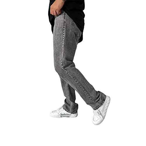 Loalirando Jeans Uomo Larghi Classico e Semplice Pantaloni in Denim Uomo Tinta Unita Streetwear Pantaloni Uomo Eleganti Strappati S-L (Grigio, Medium)