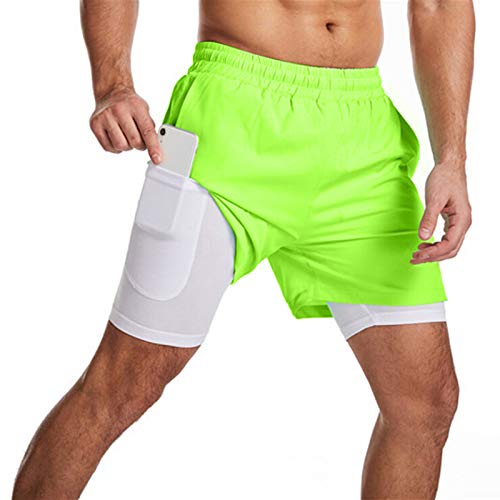 Loalirando Pantaloncini Sportivi da Uomo Short da Palestra con Tasche Foderati Cerniera Asciugatura Veloce Corsa Calzoncini Fitness Shorts (Verde Fluo, S)