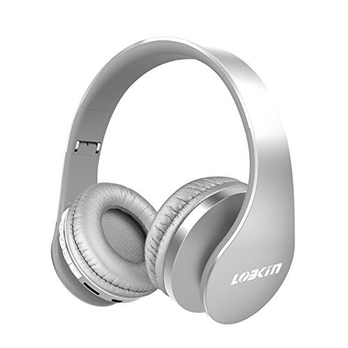 LOBKIN Cuffie Bluetooth Auricolari Stereo con Microfono Bluetooth 4.1 Pieghevole Over-Ear Senza Fili Cuffie con Microfono Ricaricabile Riduzione del Rumore Interno Supporto SD/TF Card - Argento