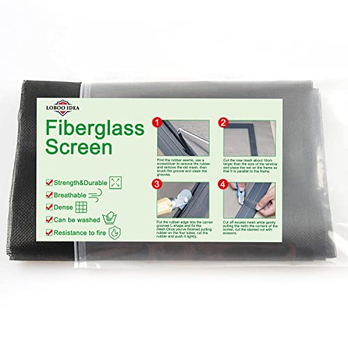 Loboo Idea, maglia di ricambio per schermo in fibra di vetro, per finestre e porte in vetroresina, per patio e finestre (120 x 300 cm, colore: nero