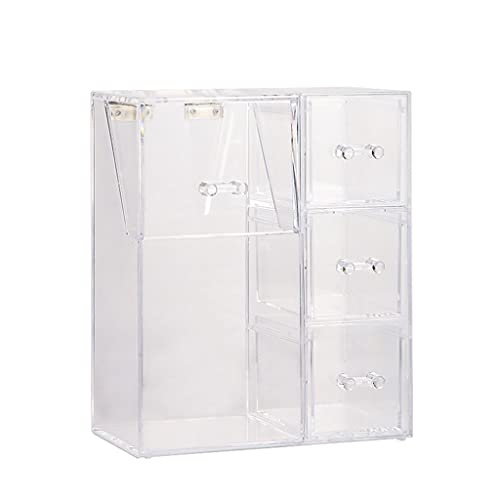 Lobounny - Porta pennelli da trucco con coperchio antipolvere e cassetto, con perle in acrilico trasparente, organizer per cosmetici in cotone