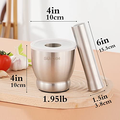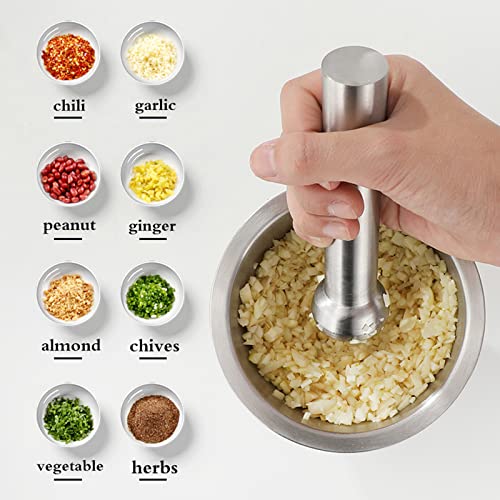 Locci Set di mortaio e pestello, piccolo, molcajete, macina pillole guacamole e ciotole frantoio per erbe aromatiche e pesto, in acciaio inox 18/8 (piccolo-10,2 cm)