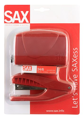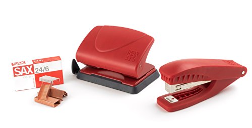 Sax Locher + cucitrice Set | perforatore per 15 fogli e anleges chiene A6 a A4 | Cucitrice per 25 fogli + gli Sax Graffette 24/9 Rot