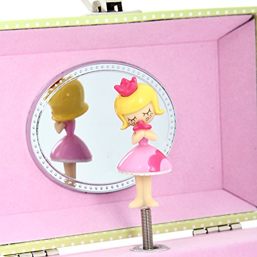 ALL'INTERNO C'È UNA GRAZIOSA FATINA PIROETTANTE: l'interno di questo portagioie per bambini è rivestito con un soffice tessuto per proteggere i gioielli e presenta una graziosa fatina piroettante e uno specchio ovale.