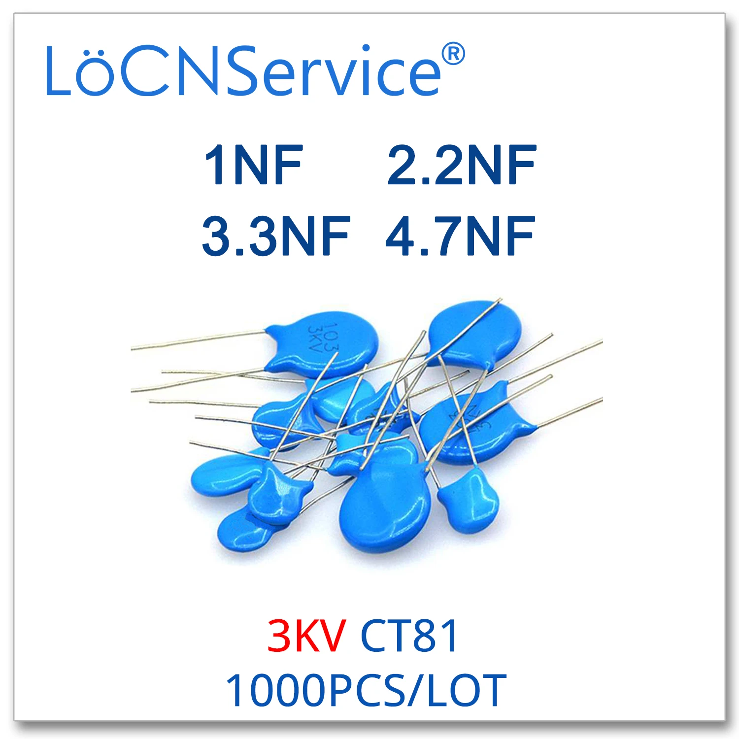 LoCNService 1000PCS CT81 3000V 1NF 2.2NF 3.3NF 4.7NF Ceramic Disc Capacitors High quality 3KV 102 222 332 472