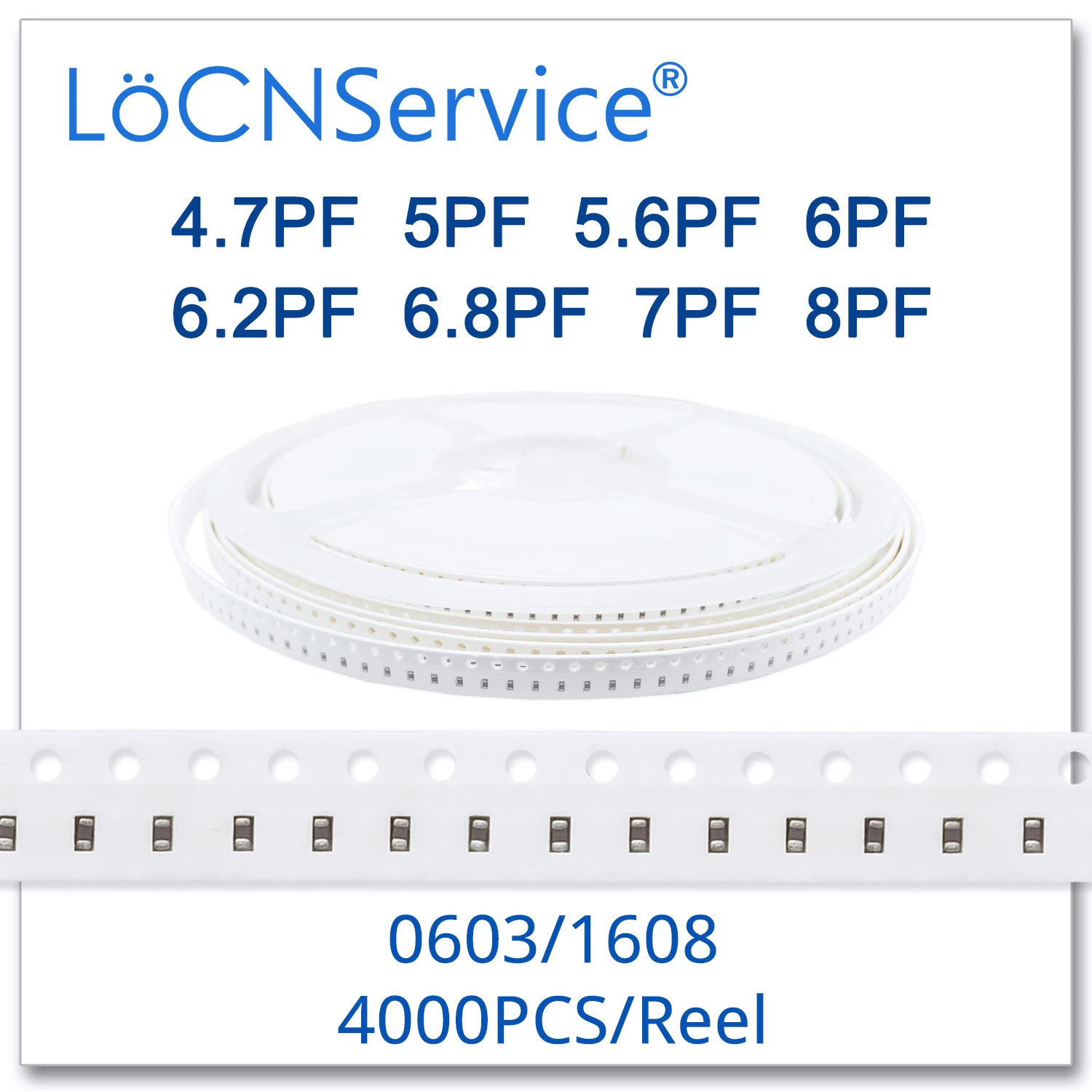 LoCNService Capacitors 4000PCS 0603 1608 COG/NPO RoHS 50V 0.5% 5% 4.7PF 5PF 5.6PF 6PF 6.2PF 6.8PF 7PF 8PF SMD High quality